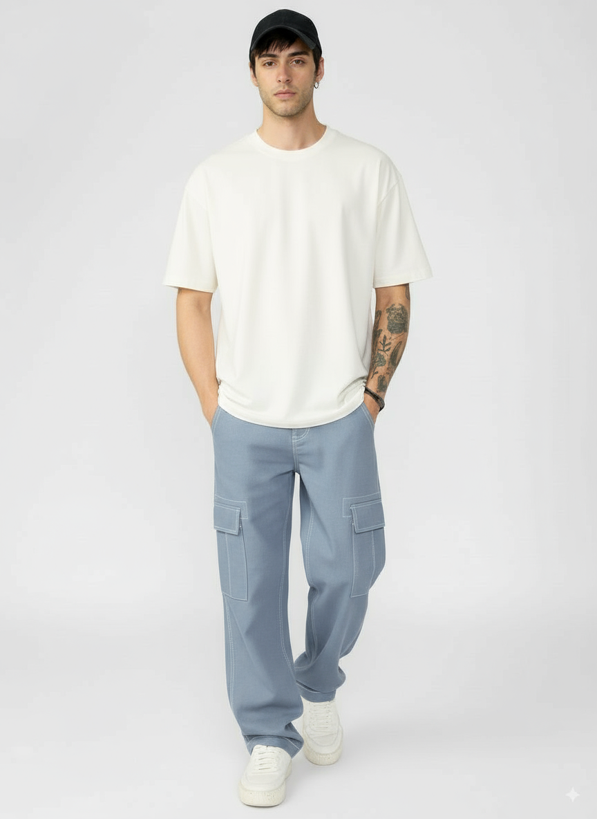 Off-White Oversized T-Shirt For Men – Premium Bio-Wash Cotton | Doriamart